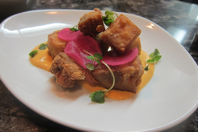 I’ve been to Ramen Champ a few times now. I figure if I go one more time, I would have tried the entire menu. Alvin did say though he and Johnny were working on plenty of specials. I was interested in a seafood-based ramen and he said that’s coming. In the meantime, I satisfied my seafood obsession with tako tots. These were perfect potato fritters stuffed with a bit of octopus and salted cod. It was like a brandade and shepard’s pie mash up. Or maybe a Japanese version of a Cuban potato ball.
