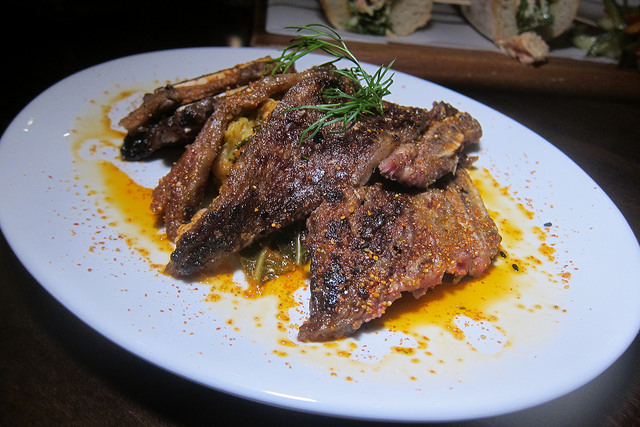 The grilled beef short ribs has a slight Asian tang to it with the “Cajun kimchi.” The ribs are even sliced in that very familiar Korean short ribs way (LA-style).