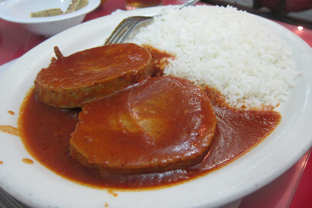 Another friend opted for a childhood favorite, boliche mechado. The sauce reminded me of the tomato sauce that’s packed with sardines. I would skip this dish.