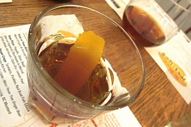 Devon did a great job pairing all the drinks to the food. After our welcome drink and amuse, we quickly rolled into a tuna pizza by Marcel paired with a vermouth drink.