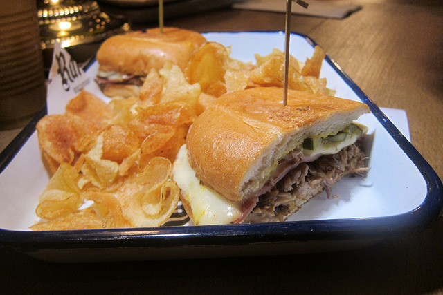 The opening event for this last Bartenders Weekend in San Diego was held at Rare Form, a studious looking bar with actual reading lamps on the communal tables. We decided to get some food while kicking off the event. My friend ordered the Cuban sandwich. I love a good Cubano and his gets points for having good mustard and meat.