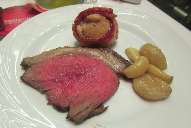 I really liked the lamb chops, sausage, picahna (top sirloin) and beef ancho (ribeye). Even the frango (bacon-wrapped chicken) was good. I had two pieces of that. I saved some of my roasted garlic from the Market Table to eat with the meat.