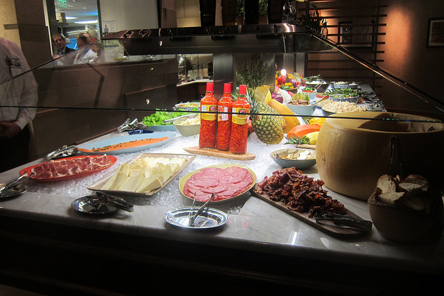 The pristine Market Table had not just all the fixings for salad but beautiful antipasti as well. I was all about the tray of bacon, huge round of cheese, cured meats and the beautiful vegetables.