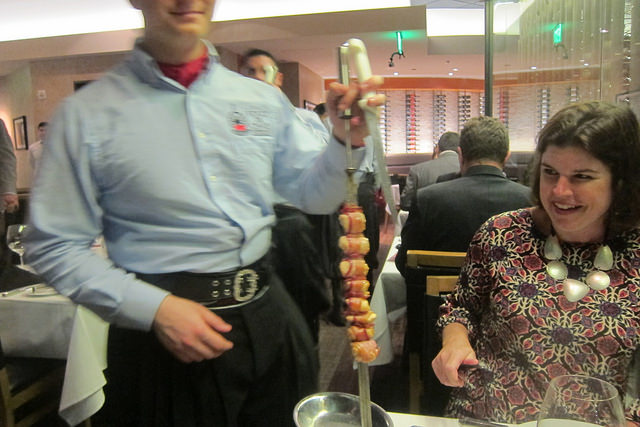 There cards on the table indicating whether or not you want to try the various grilled meats. Green means yes and red means stop. Flip it to the green and wait for all that glorious meat. You can flip back and forth if you’re taking a little break which we did several times.