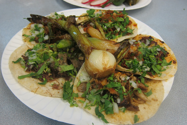 4836 Huntington Dr S., El Sereno, CA 90032 — (323) 225-6262Next we stopped at La Naraja taqueria. When I was growing up, this space was the old Pioneer Chicken. Now it serves everything from teriyaki chicken to Mexican food. And most nights there is a taquero manning a grill inside the restaurant (which makes it very smokey inside). There was also a two-man mariachi playing softly by the door.
