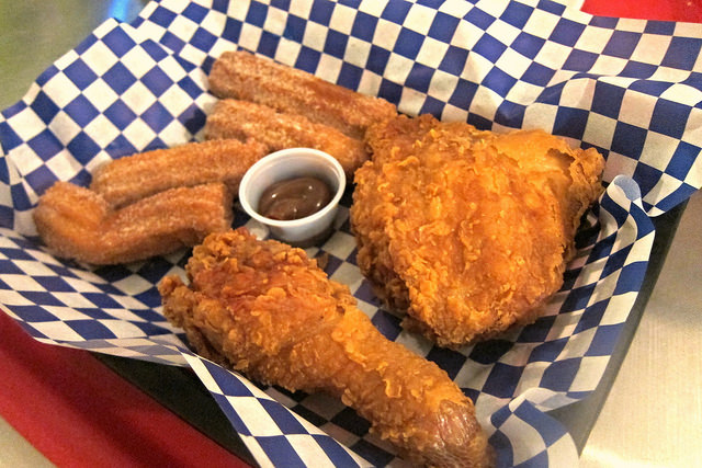 I really wanted to love the churro ice cream sandwich but we got it at the same time as the chicken and it was melting rapidly. Advice? Eat dessert first.