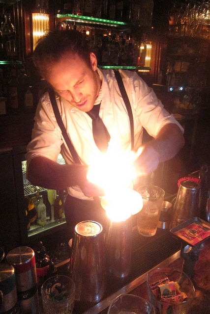 The reason why I sit at the bar is you never know when there’s a show. Flaming a garnish has never looked more dramatic than it did at Roger Room the other night.