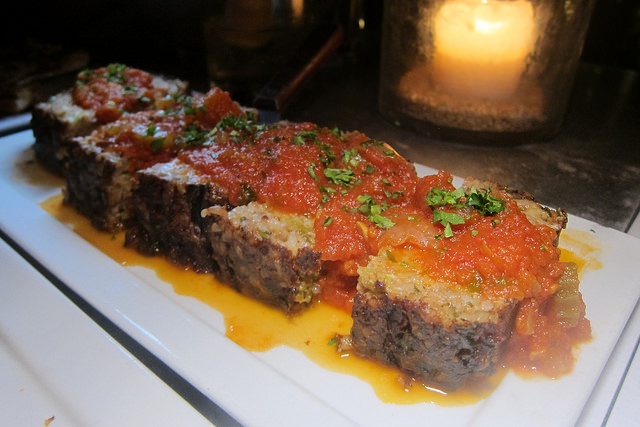 Nut loaf. Yes, this would be instead of meatloaf. Like the sliders, you wouldn’t miss the meat at all. It gives me the same cozy feelings as eating Mom’s meatloaf except, well, my mom never made this. I do think she would approve of the fresh tomatoes rather than terrible ketchup though!