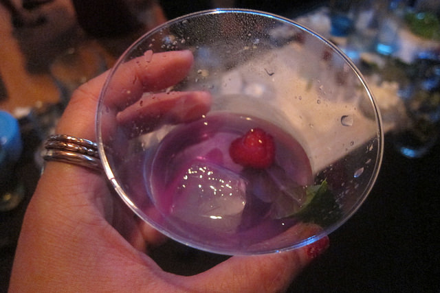 Nima told his story about the drink to everyone which includes how he loves whiskey and thought the EvanGinlist as a sort of gin Sazarac. It was super cool the Butterfly pea-infused Hendrick’s gin, cucumber-infused Montelobos, his own sage/saffron/cardamon bitters drink changed colors from bright blue to purple with a squeeze of lime.
