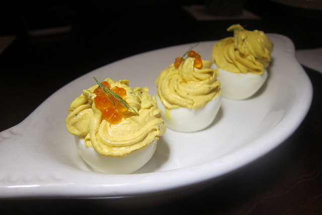 The deviled eggs were good and honored our request to leave off trout roe from one (a friend had a fish allergy).