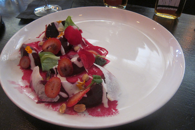 We also tried the beet salad which was served whimsically on only one side of the plate. But don’t think you only get half as much. There’s plenty of salad.