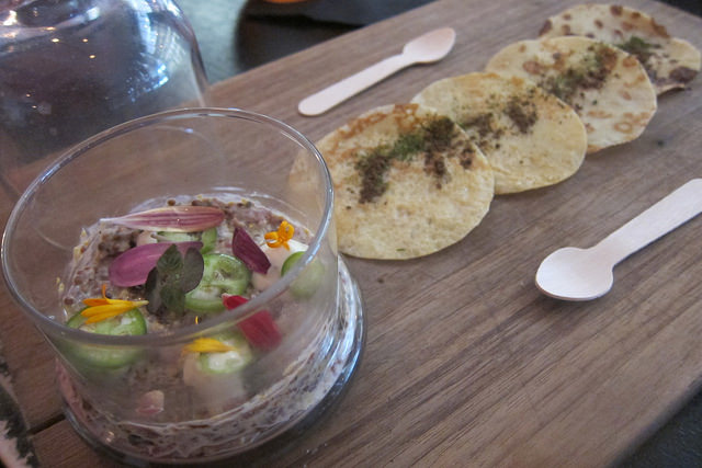 Some first bites included the delicious wagyu beef tartare and octopus presented on top of a tequila bottle.