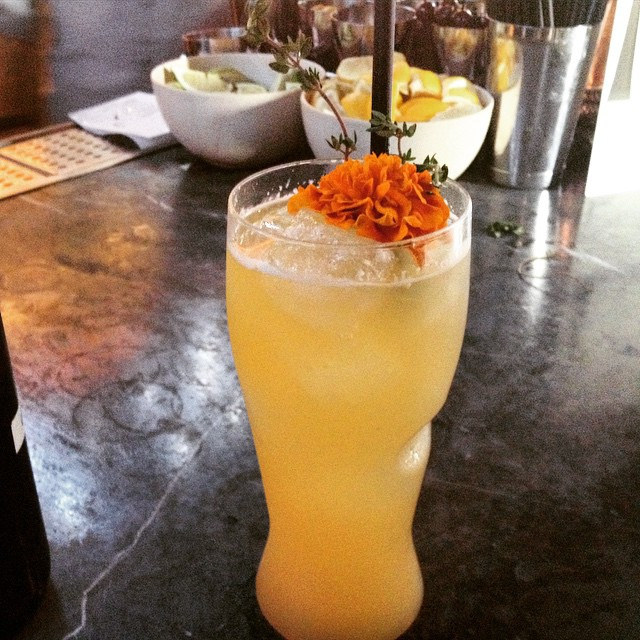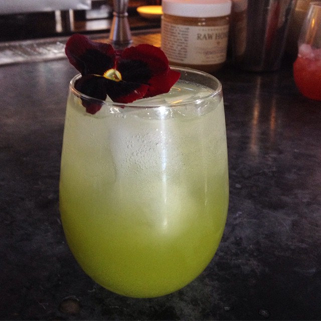 One of the more striking drinks I’ve had in recent memory is the Sanders for Peasident. Mandolyn made an agua fresca with everything green including snow peas, tomatillio, basil, lime and cucumber. The result was not only visually stunning but delicious.
