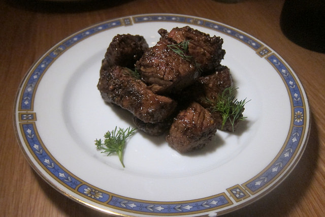 We started out with some plates from the cart that was roaming around the restaurant. It’s not dim sum though it’s easy to think of the cart way. It was piled with easy starters and we probably would have gotten more but we also wanted to try some plates from the menu.