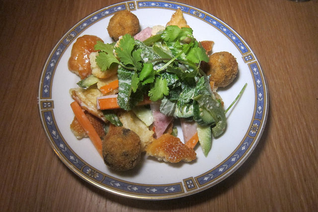 I knew I wanted the banh mi salad right away. It wasn’t quite what I expected though I don’t know what I expected. Generally speaking I’m not a fan of croutons but those who are will love this salad. For the most part, I ate all the greens and the lovely pate balls.
