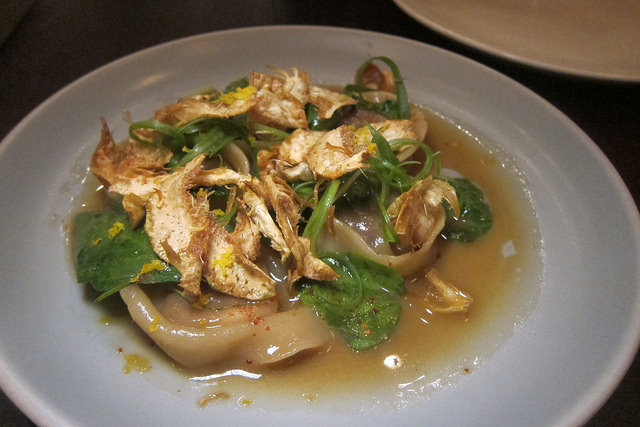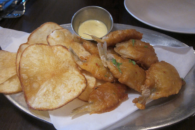 Something told me to order the fish and chips. I just had this feeling. And it turned out to be my favorite dish. Chef Nyesha explained the shape comes from butterflied smelt. How delightful! I’ve had whole fried smelt before but when it’s flattened out, they made a most interesting fish and chips. Don’t forget to sprinkle some chile-infused vinegar on your chips and/or fish.