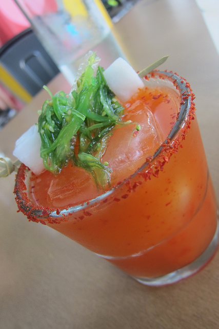 Going for the Kimchi-lada turns lunch into brunch instantly. Because what is brunch without the drinks? For those Bloody Mary and Michelada fans, this one is a fun variation with soju and umami-rich flavors such as kimchi, olive and Clamato.