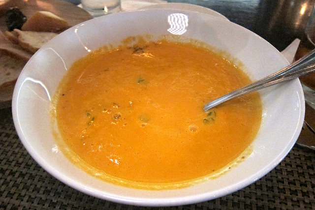 I was in KCMO in early September so the tomatoes were still going strong. That meant I had to order tomato soup everywhere and anywhere. Bluestem does a nice one which led to an even better pairing..