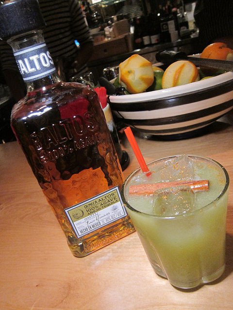 The Leader – Olmeca Altos anejo tequila, tomatillo, pasilla chile, canela, agave, lime