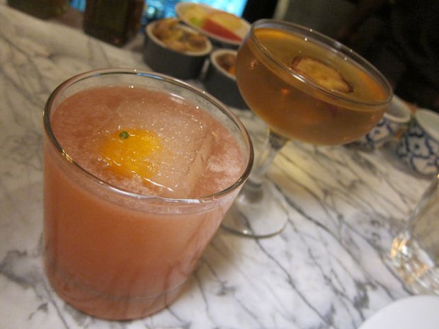 The two of us tackled 5 of the 8 drinks on the menu which isn’t bad at all. I’ll just have to get back over there to try the other three. I loved the Weather Up but I can’t and won’t resist drinks with Fernet Branca. Elysian’s version with creme de peche liqueur and beet was very interesting. I also liked the cheeky Felix and Oscar. It’s described a bit like a Scotch pina colada.