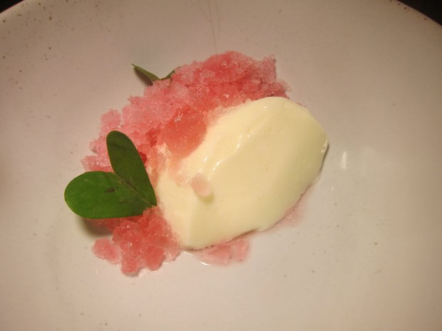 And the last course of the tasting menu was the fantastically light buttermilk pudding. I loved the rose ice with it as well. It was a soothing way to end our great meal.