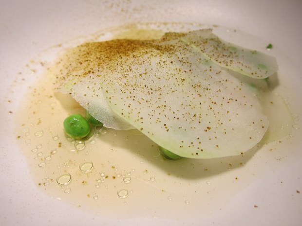 The next course was like a fresh bite of spring with peas and scallops. They’re hidden under the sliced kohlrabi.