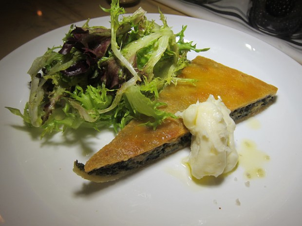 The kitchen very kindly sent out the Swiss chard erbazzone which is a crazy good tart with a nice little chicory salad.