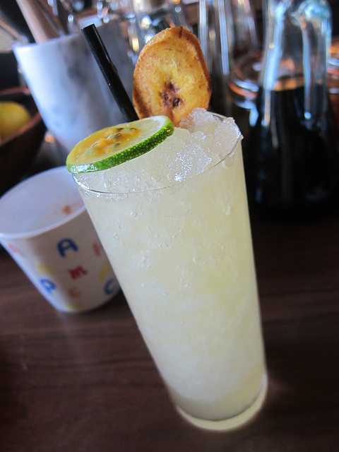 Passion of the Geist – cachaca, blanco tequila, banana liqueur, creme de cassis liqueur, passion fruit, lime