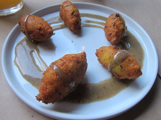 There were only two of us but we somehow managed to tackle nearly all the appetizers starting with the hush puppies. I was never much of a hush puppies person but I’ve learned to love them over the years. And now in fact will order them. They were on the menu that day so I’m so glad they were sent out.