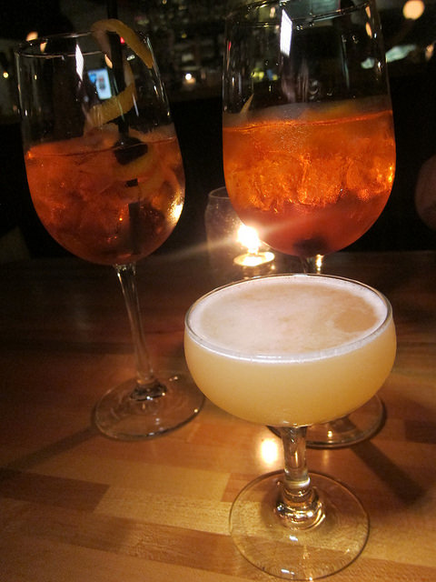 After dinner at Black Rooster Taqueria, we hopped next door to The Guesthouse. The larger bar had a cool mid century / Palm Springs (or I guess Florida)/ mod feel. My friends decided to get Aperol Spritzes and I had an Army Navy (gin, orgeat, lemon).