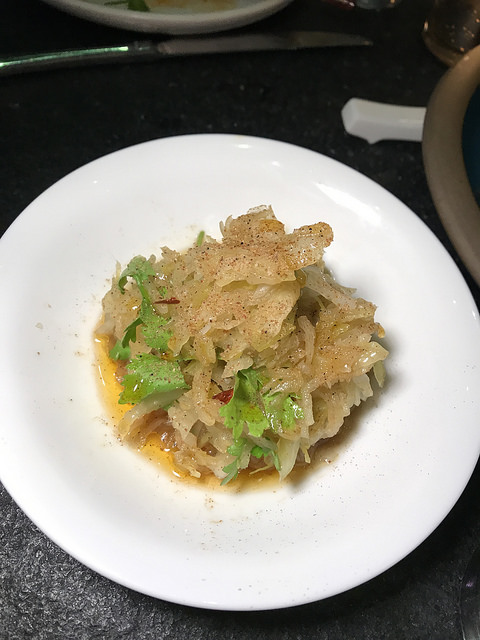 And that was one of my funny experiences at Mister Jiu’s. Sometime last year I had seen an episode of Chef’s Night Out featuring Brandon Jew, the chef from this restaurant and it inspired me to add it to my ever-so-long list of SF restaurants and bars. And then everyone I asked about it said it was impeccable. So my friend and I found ourselves there one busy Saturday night. Luckily we were able to find a couple of seats at the bar.