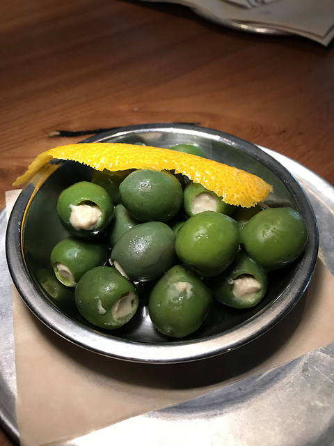 Although I was really stuffed, I couldn’t help but order a few things including the foie stuffed olives. Oh be still my ever loving heart! These were great. Although it would be really hard to imagine them not being good. If you like bleu cheese stuffed olives, you might want to give these a whirl.