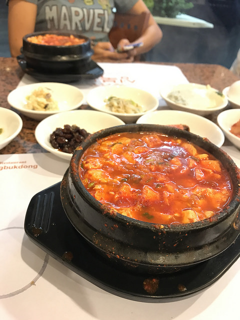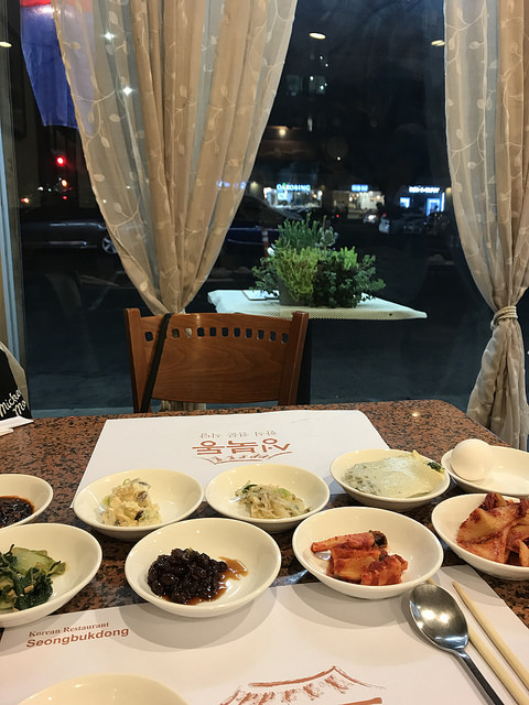What do you do when you’re in Koreatown? Eat Korean food! After having a cocktail or two down the street at the Normandie Club, we wanted something nummy and warm. I did a quick search for tofu soup, my beloved soon dobu, and found Seong Buk Dong. I thought it was related to SKD in Little Tokyo but after eating dinner there, I think they’re quite different. Besides the fact the names are different. SKD stands for So Kong Dong and their original location seems to have disappeared from Ktown…