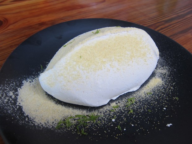 For dessert, we got the snap pea sorbet with coconut and lime. This was really great despite my hatred of coconut. I really enjoyed the lime zest as well as the cute mochi.