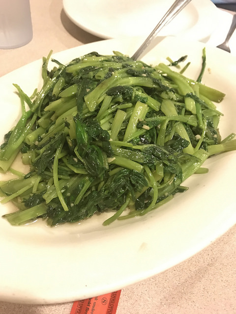 We also got some Chinese greens, my favorite hollow stemmed veggies (aka morning glory, aka ong choy). I fleetingly thought about that hotel fridge. Nah, we just finished up the plate of greens.