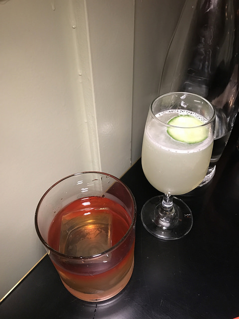 We started out with a couple of drinks. I had the Still Single, a whiskey drink that was very pretty with the Peychaud’s bitters. My friend had the skinny margarita which she declared very good.