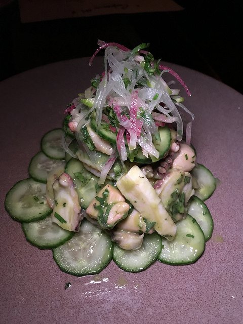 For a starter, we had the green campechana, a green seafood cocktail. There were plenty of tender octopus. I liked that it was served simply on a plate and not molded into a glass.