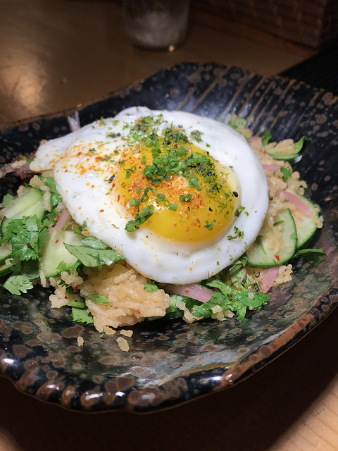We loved the crispy rice salad. With beef sausage, crispy herbs and a perfect fried egg, it was just enough carbs to soak up all the booze.