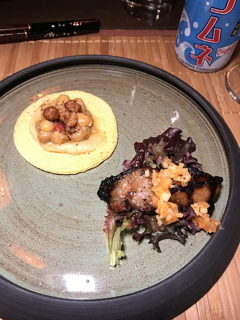 We started with the banchan course. The small bites included Tokyo potato salad, pickled persimmon, pickled Persian cucumbers, roasted pumpkin and radishes.