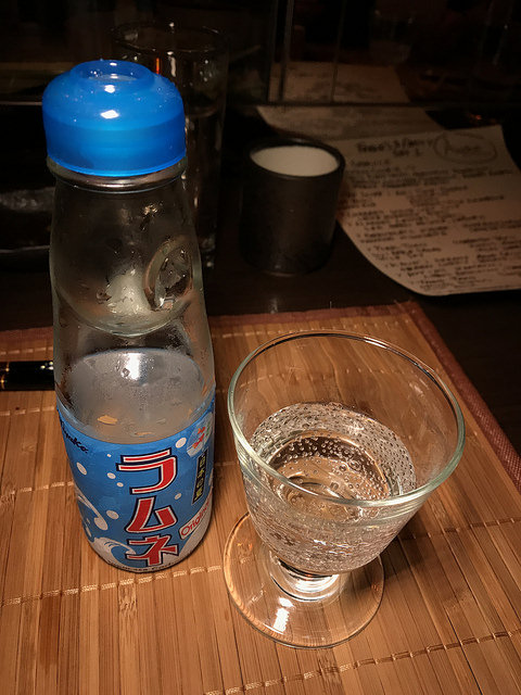 I decided to go non-alcoholic for dinner and had a Ramune soda. But I thought it was fun to drink it out of a cool glass.