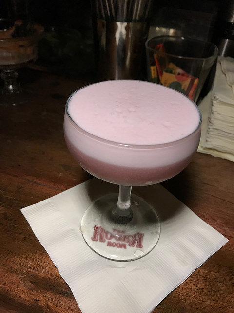 The Macrides is named for a long time Roger Room regular. It’s a nice blend of Scotch whisky and Pimm’s. The tartness of the two citrus juices; lemon and orange, is balanced out by the sweet Yellow Chartreuse.