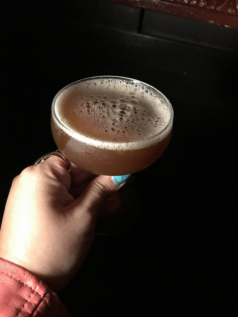 When we first got to Roger Room, it was completely packed so don’t mind the mini photo shoot by the door (and my hand holding the drink). I had scanned the list quickly and decided on the Fantastic Forage since the gin and a “spoonful” of mezcal mix sounded interesting.