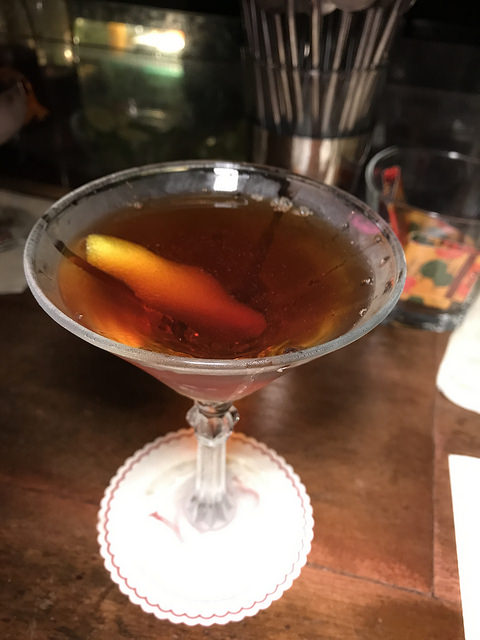 Boxed Superfecta– Remy 1738 cognac, Alessio Rosso, Mandarin Napoleon, Peychaud’s Aperitivo, Aztec chocolate bitters, orange peel
