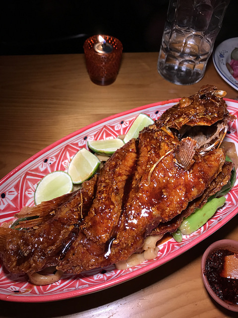 Although I’ve been to the Exchange restaurant plenty of times for lunch, it was a treat to check it out for dinner. The menu is much more extensive and showcases the Chinese-Israeli fusion better. Also, there was a secret menu item; whole fish, that we couldn’t pass up!