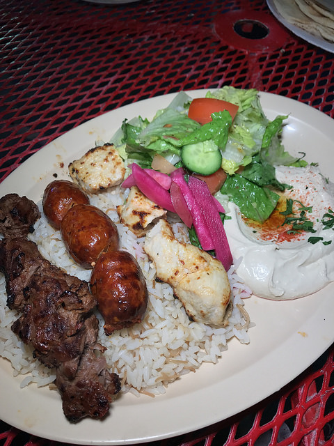 I ordered the combo plate which came with chicken, beef and chorizo kabobs. My favorite was the beef. I also enjoyed the chorizo as it was quite different from any other kabob shop I’ve been too. My Persian friend thought this wasn’t quite fusion per se. He felt the food was distinctly both Mexican and Middle Eastern. And that this was more of a marriage rather than the offspring (children) of two cultures.