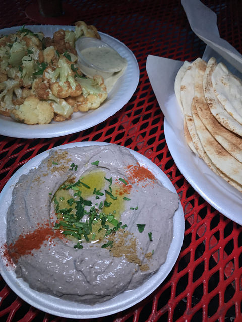 Calling themselves an Oaxacan Arabesque eatery, X’tiosu Kitchen in Boyle Heights is serving up a mashup of Mexican (Oaxacan) and Mediterranean/ Middle Eastern (Arabesque) food. I dropped by this week with a group of people and we took over the little corner of the strip mall X’tiosu is in. There is no indoor seating so be prepared to take the food to go or eat in the parking lot.