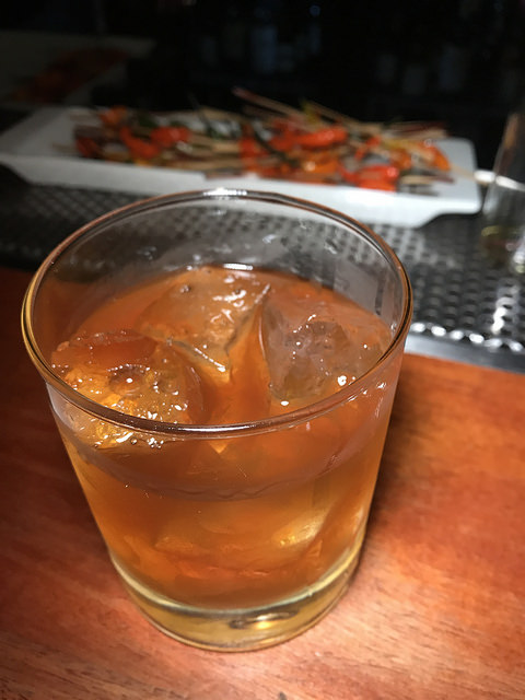 I also tried the other cocktail, the Woon Old Fashioned. The 5 year Real McCoy gets paired with dark palm sugar and 5 spice bitters. I thought the spritz of the smokey tea tincture really worked as well in this drink.