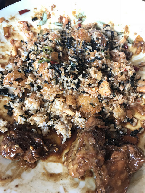After having such a filling meal, I was surprised I was able to fit in every delicious seaweed-strew bite of scorched rice and more chicken! I honestly thought we’d have leftovers.