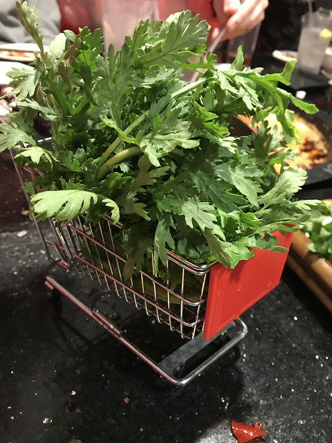 The greens came in the shopping cart was so freakin’ adorable. I should have ordered more veggies but we were ready for the meat!