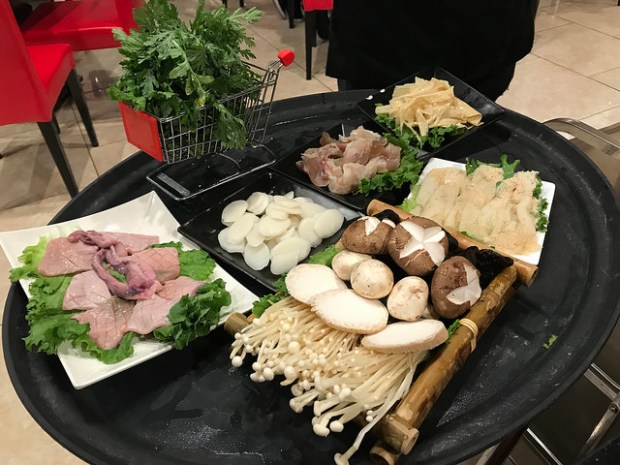 This hot pot eatery was very fancy. They had chargers to lend to tables, several lucky kitties, even a Pokemon stuffie in the corner of the waiting room. But I was most impressed by the dragon handles of the hot pot. We had two burners at our table so we got four different broths in our two divided pots (yin yang pots). We tried the mild, mild mild spicy, medium spicy and tomato. We were very curious about the difference between mild and mild mild spicy. Since I was at the end of the table with the medium and tomato broths, I mostly ate out of the medium broth which I really enjoyed the depth of its flavor.